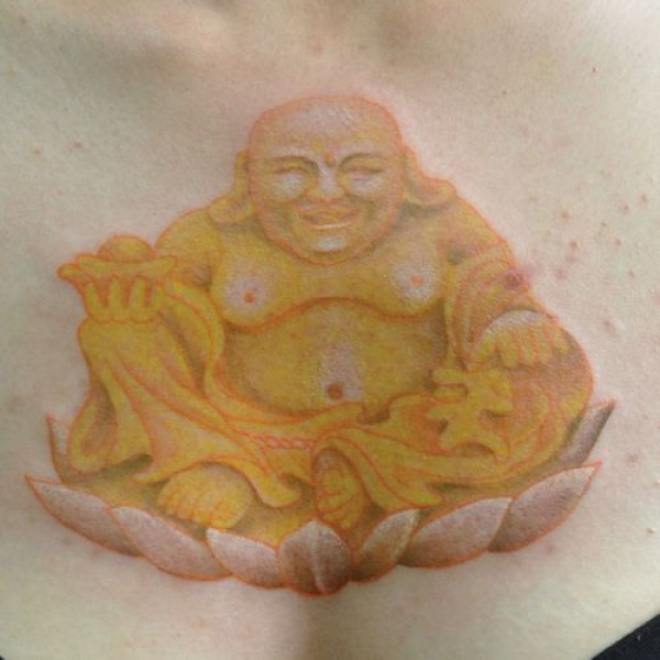 腰部经典的一款彩色弥勒佛纹身图案_宗教纹身图案大全_纹身图吧