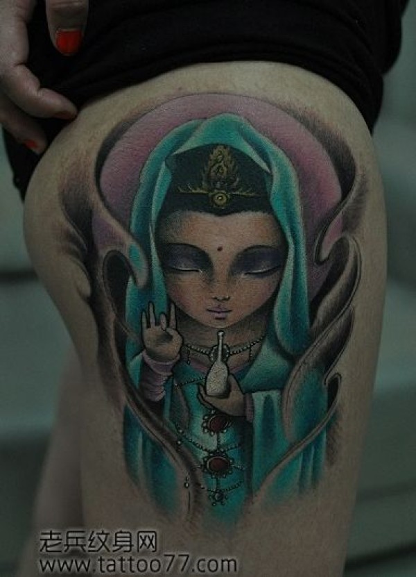 女孩子腿部可爱的一款观音纹身图案_宗教纹身图案大全_纹身图吧