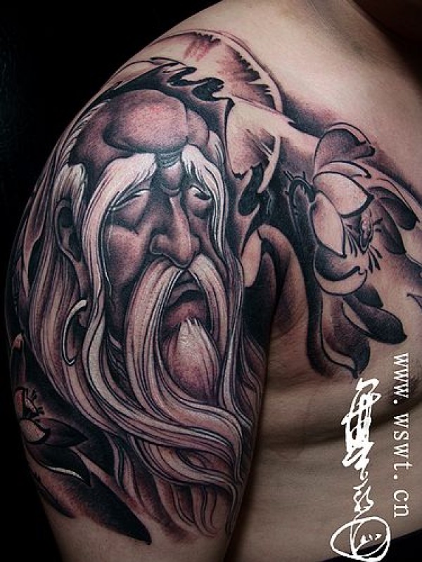 专业文身店半胛罗汉莲花纹身图案图片_宗教纹身图案大全_纹身图吧