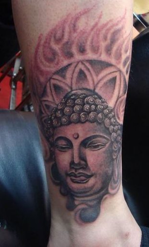 一款腿部观音佛头纹身图案图片_宗教纹身图案大全_纹身图吧