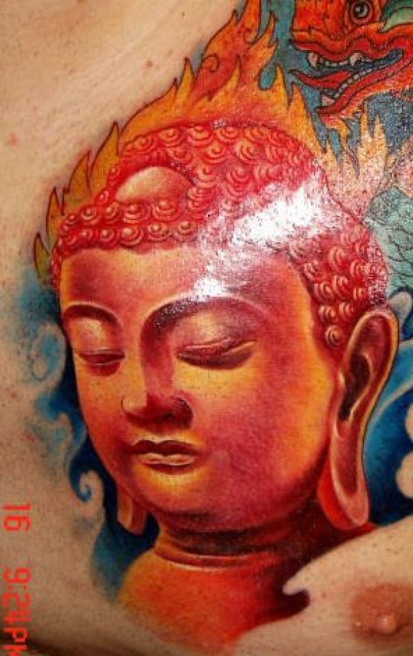 胸部彩色佛头纹身图案纹身图片_宗教纹身图案大全_纹身图吧