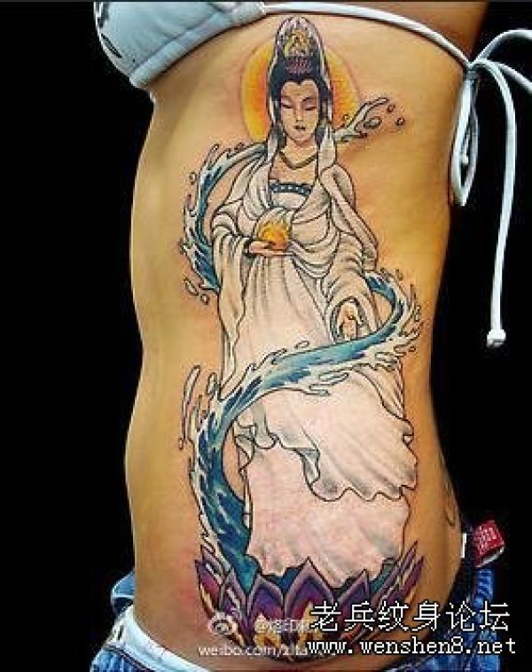 一款美女腰部彩色观音纹身图案纹身图片_宗教纹身图案大全_纹身图吧