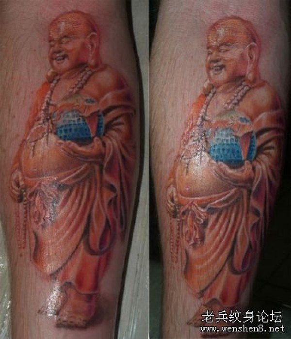 一款腿部彩色弥勒佛纹身图案纹身图片_宗教纹身图案大全_纹身图吧