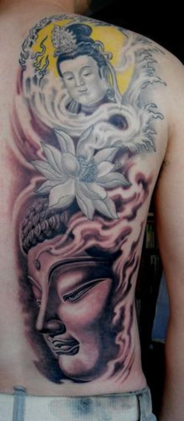 背部半背观音佛佛头纹身图案纹身图片_宗教纹身图案大全_纹身图吧