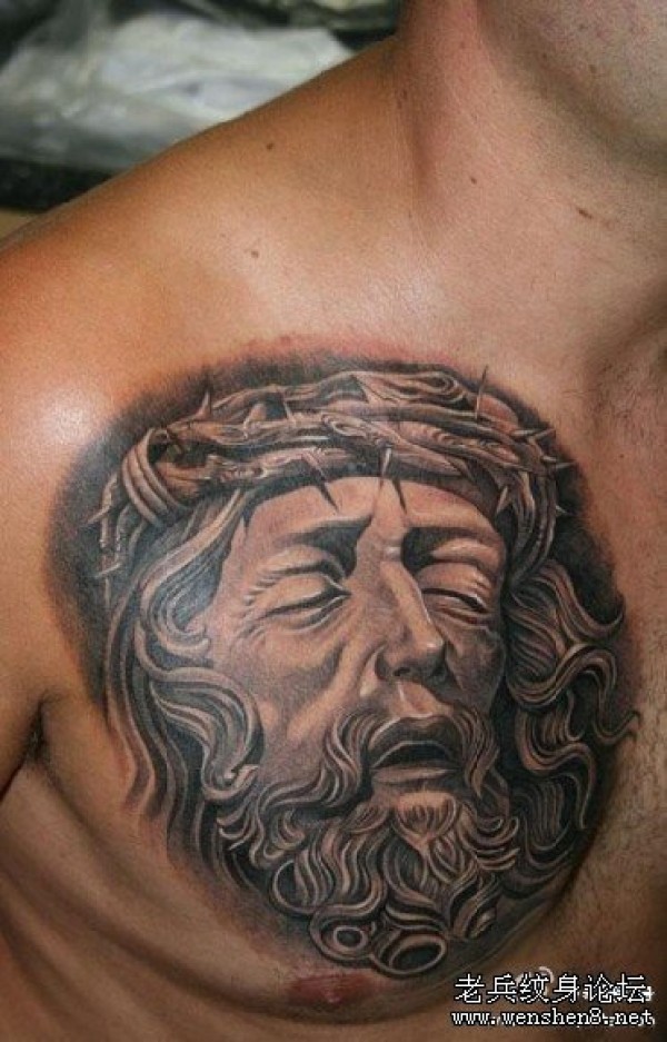 胸部耶稣纹身图案纹身图片_宗教纹身图案大全_纹身图吧