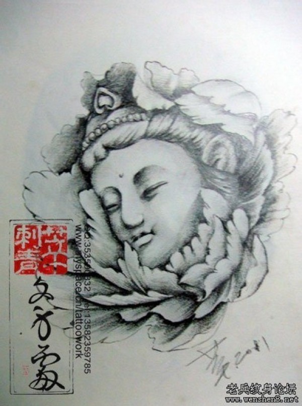 武汉文身店为你提供一款观音佛像纹身图案纹身_宗教纹身图案大全_纹身图吧