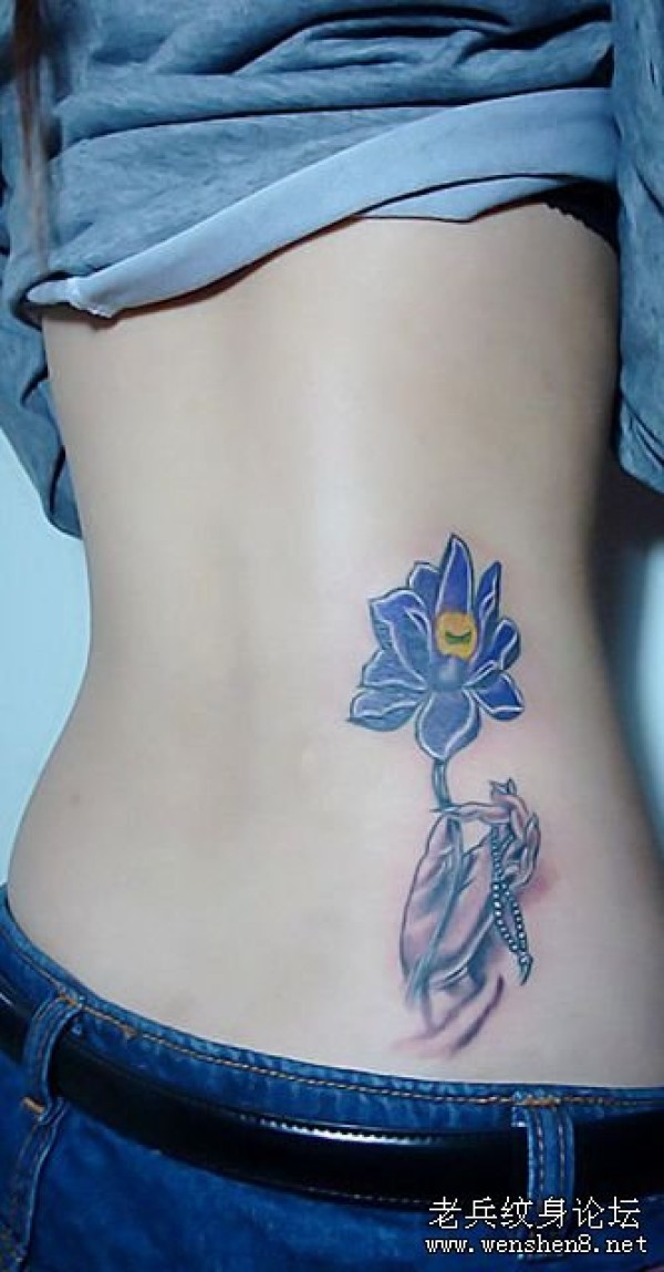 美女侧腰莲花佛手纹身图案大全_宗教纹身图案大全_纹身图吧