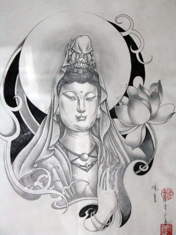 奉献一款适合做大臂或者满背的莲花观音菩萨佛_宗教纹身图案大全_纹身图吧