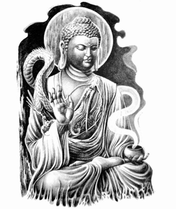 盘腿参禅释迦牟尼佛纹身_宗教纹身图案大全_纹身图吧