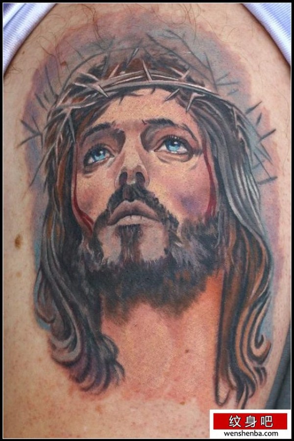彩色的耶稣头像纹身_宗教纹身图案大全_纹身图吧