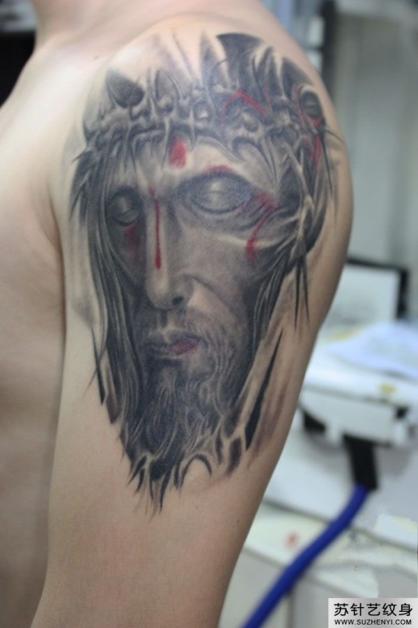 手臂耶稣头像纹身_宗教纹身图案大全_纹身图吧