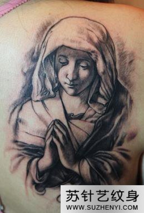 肩部慈祥圣母纹身_宗教纹身图案大全_纹身图吧