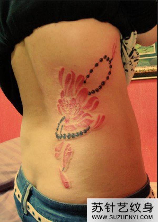 腰侧时尚莲花佛珠纹身_宗教纹身图案大全_纹身图吧