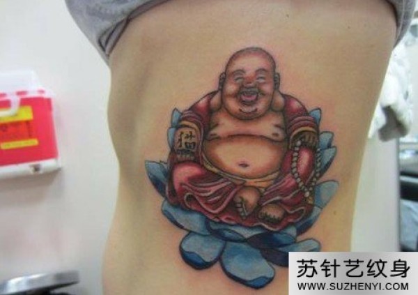 腰部弥勒佛时尚纹身_宗教纹身图案大全_纹身图吧