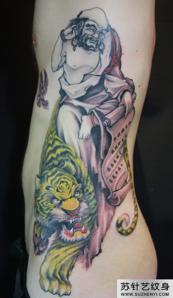 腰部纹身伏虎罗汉_宗教纹身图案大全_纹身图吧