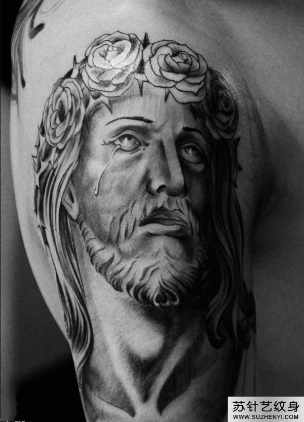 落泪耶稣头像纹身_宗教纹身图案大全_纹身图吧