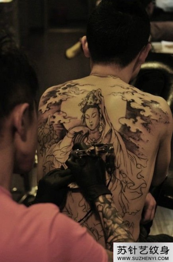 满背唯美精致观音纹身_宗教纹身图案大全_纹身图吧