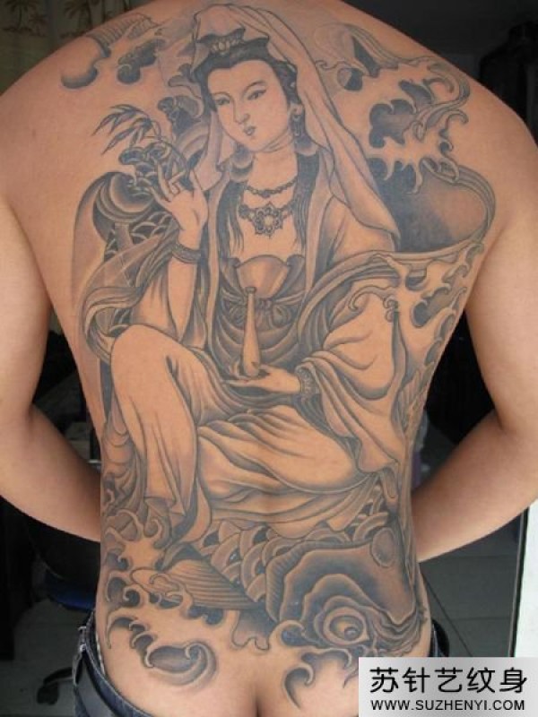 男人满背完美的观音菩萨刺青_宗教纹身图案大全_纹身图吧