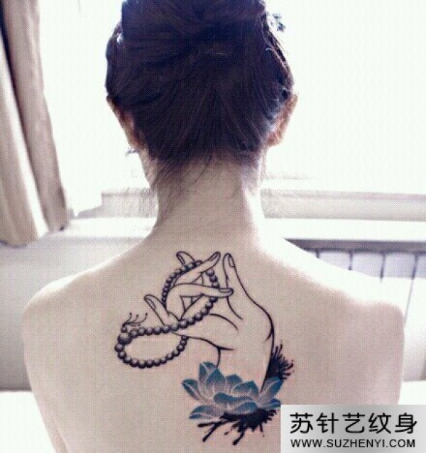 美女背部手拿佛珠性感纹身_宗教纹身图案大全_纹身图吧