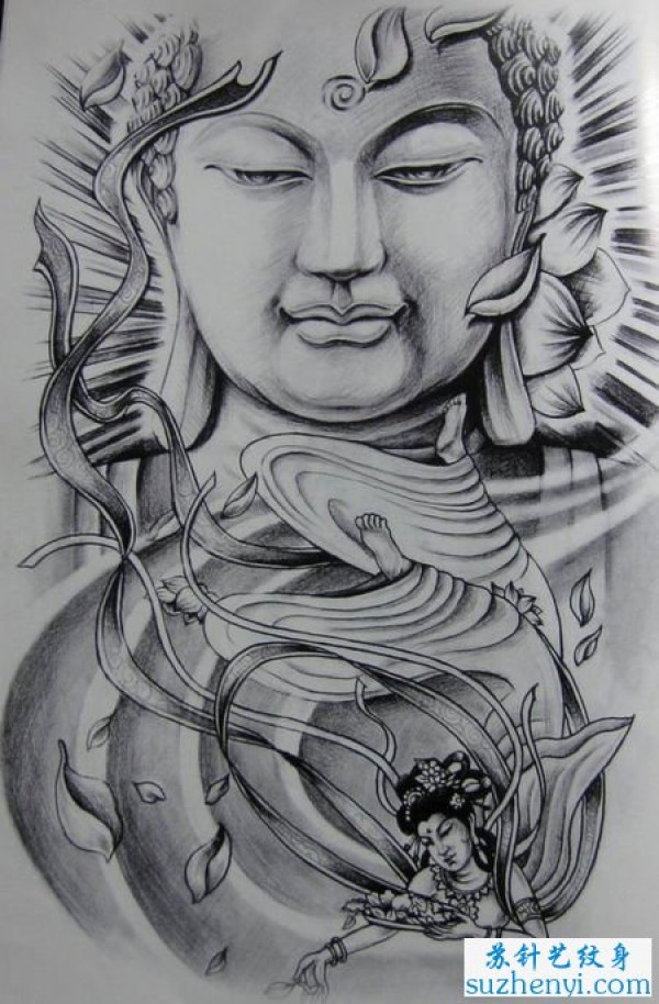 盘腿参禅释迦牟尼佛纹身_宗教纹身图案大全_纹身图吧