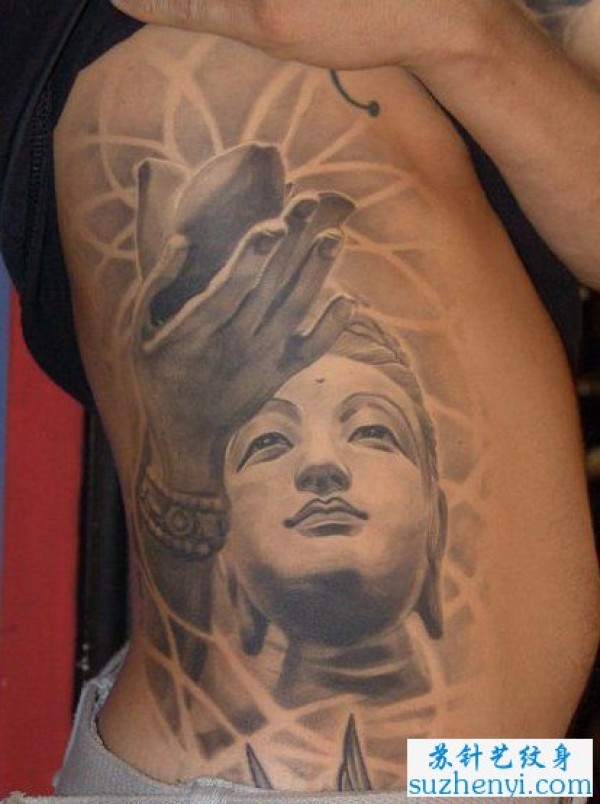 腰部观音石像纹身_宗教纹身图案大全_纹身图吧