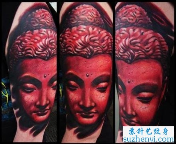 腿部观音佛头像纹身_宗教纹身图案大全_纹身图吧