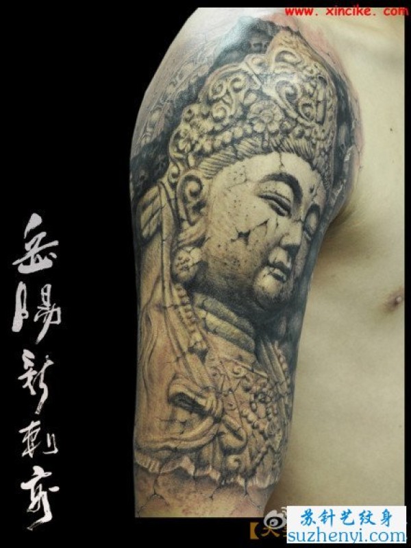 手臂石雕大势至菩萨纹身_宗教纹身图案大全_纹身图吧
