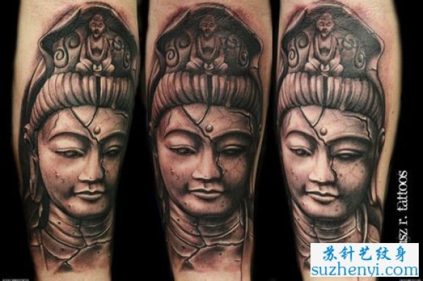 石雕观音纹身_宗教纹身图案大全_纹身图吧