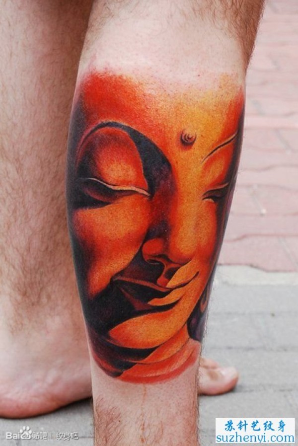 腿部彩色佛头纹身_宗教纹身图案大全_纹身图吧