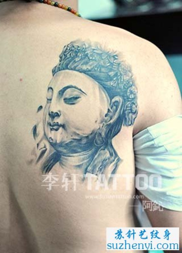 肩背魏晋石雕佛头纹身_宗教纹身图案大全_纹身图吧