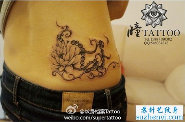 腰部莲花与佛珠纹身_宗教纹身图案大全_纹身图吧