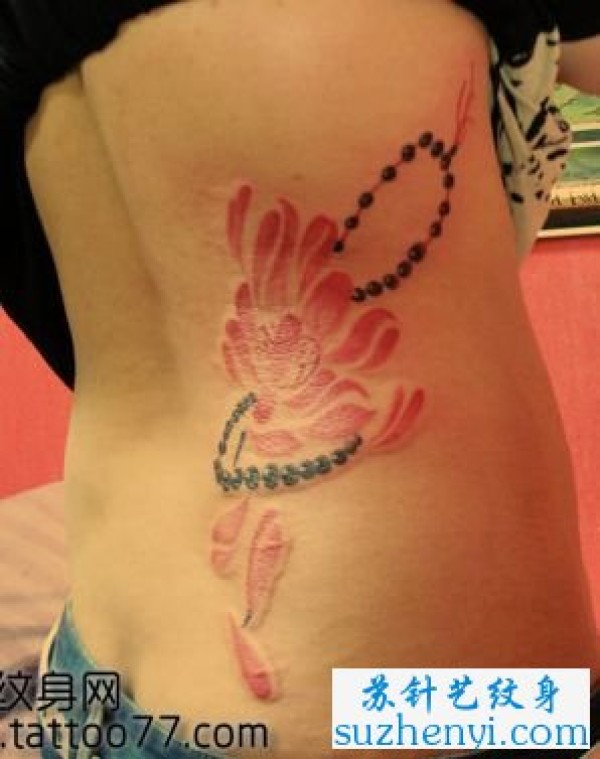 腰部莲花佛珠纹身_宗教纹身图案大全_纹身图吧