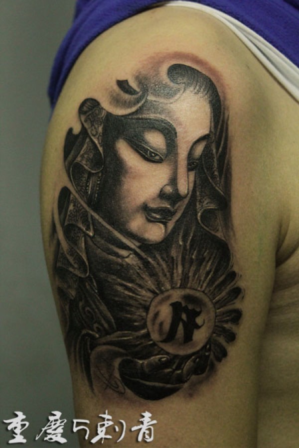 盘腿参禅释迦牟尼佛纹身_宗教纹身图案大全_纹身图吧