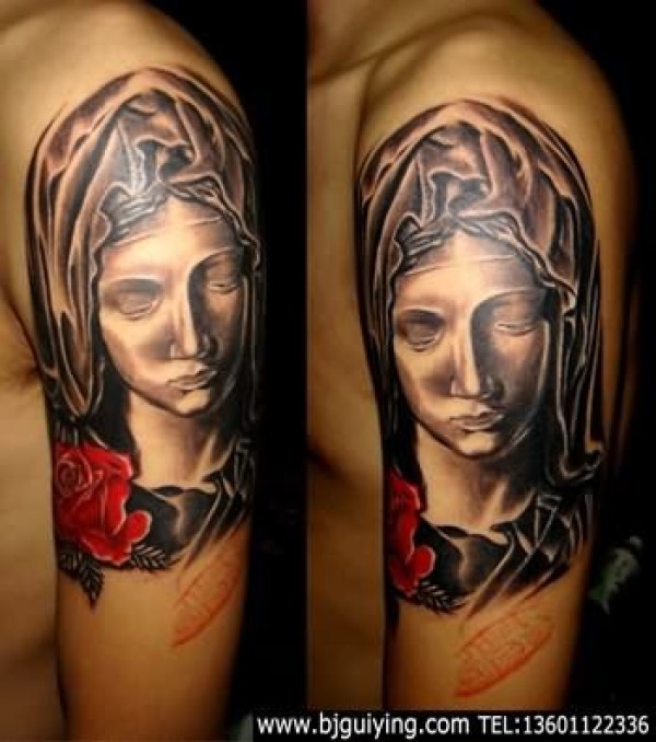 圣母玛利亚纹身图案现代纹身风格_宗教纹身图案大全_纹身图吧