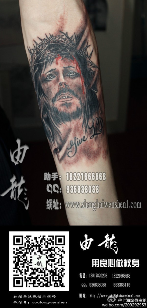 男生手臂耶稣纹身_宗教纹身图案大全_纹身图吧