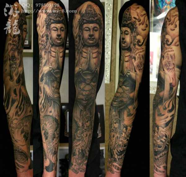 盘腿参禅释迦牟尼佛纹身_宗教纹身图案大全_纹身图吧