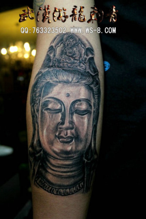 腿部观音佛头像纹身_宗教纹身图案大全_纹身图吧