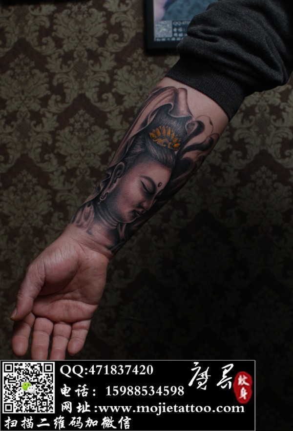 小手臂观音佛像纹身_宗教纹身图案大全_纹身图吧