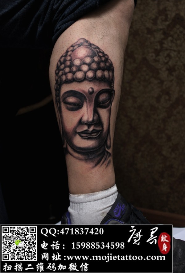 小腿佛像佛头纹身_宗教纹身图案大全_纹身图吧