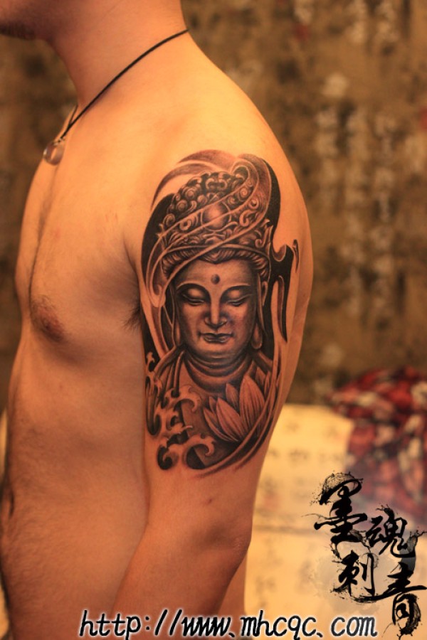 盘腿参禅释迦牟尼佛纹身_宗教纹身图案大全_纹身图吧