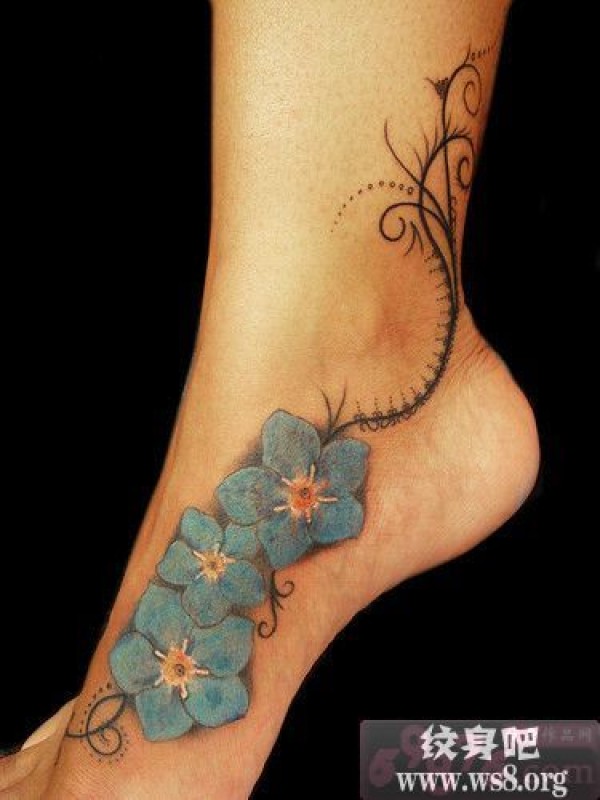 脚背美丽小花朵纹身图案_植物纹身图案大全_纹身图吧