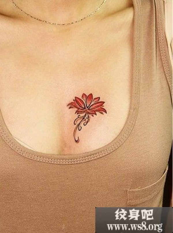 美女胸部时尚花朵纹身图案_植物纹身图案大全_纹身图吧