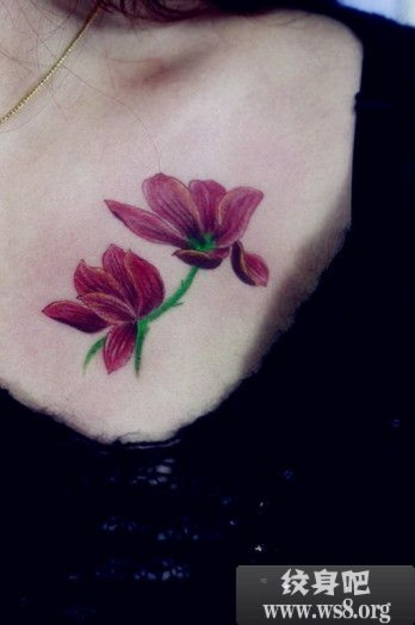 女生胸前花朵纹身图案_植物纹身图案大全_纹身图吧