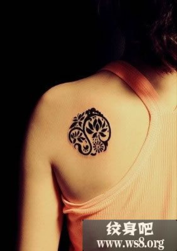 后肩时尚花朵图腾图案_植物纹身图案大全_纹身图吧