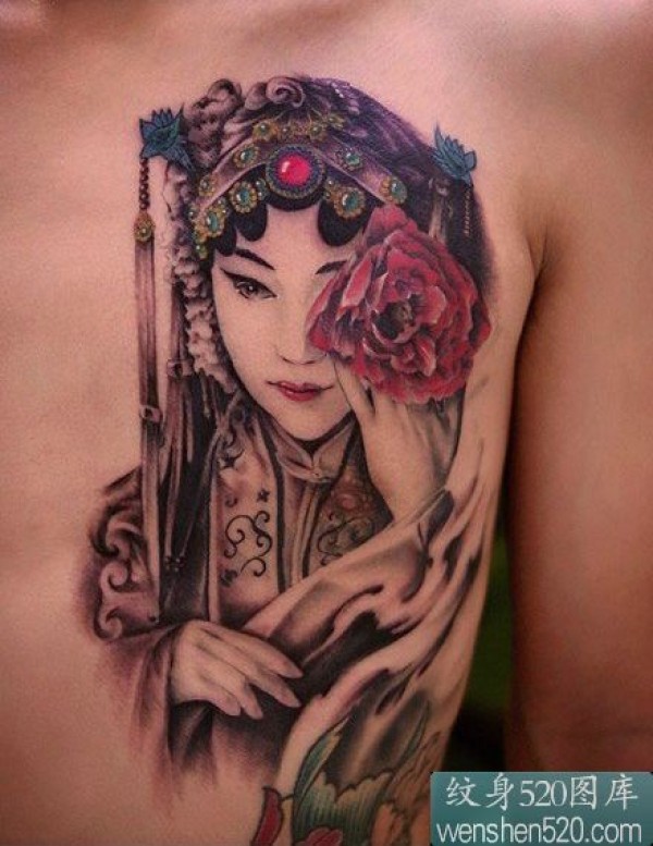 中国京剧人物花旦的纹身效果图_植物纹身图案大全_纹身图吧