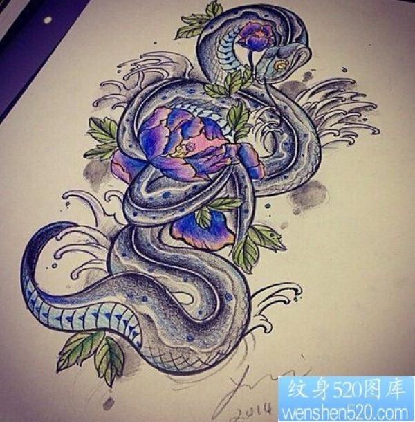 一款蛇菊花纹身图案_植物纹身图案大全_纹身图吧