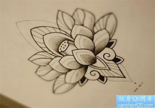 一款经典的荷花纹身图案_植物纹身图案大全_纹身图吧