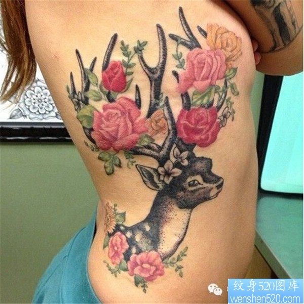 心花怒放的小鹿纹身图案_植物纹身图案大全_纹身图吧