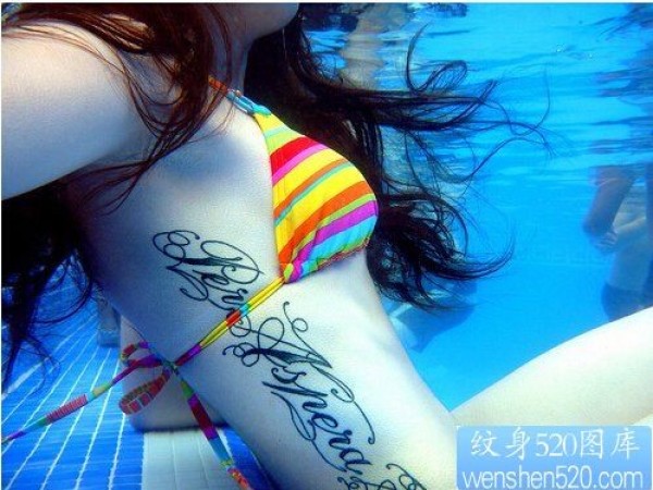 时尚女孩花体字纹身图案_植物纹身图案大全_纹身图吧