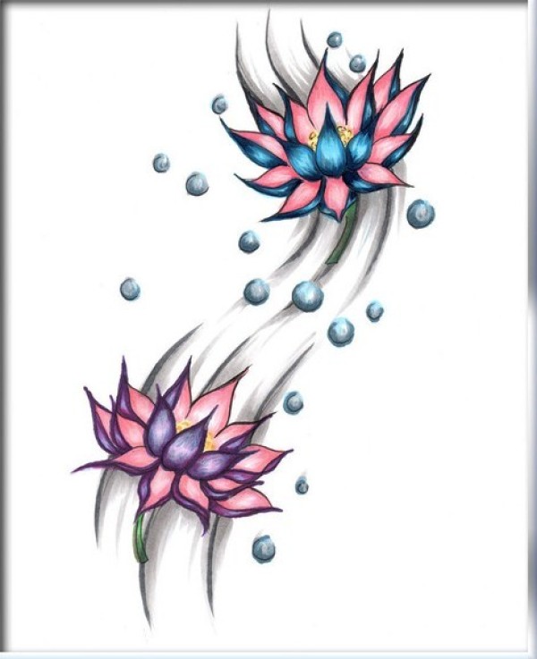 漂亮的彩色莲花纹身_植物纹身图案大全_纹身图吧